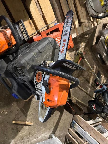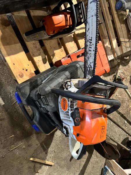 Maschinen und Zubehör für Forst- oder Hofbetrieb: Kettensägen (Stihl, McDilen, E20 usw.), Freischneider, Hochentaster, Holzspalter, Holzschredder, Düngerstreuer, Traktor John Deere, Heuwender, Grubber, Pflüge, Weidefangstand, Futterraufe