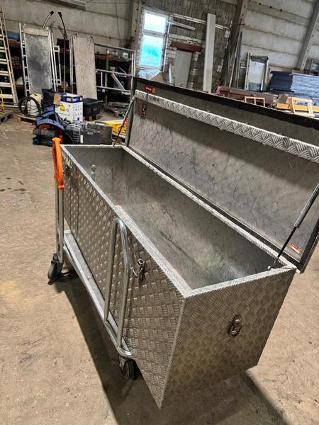 Einrichtungen und Hilfsmittel für Werkstätten, Baustellen oder Lager: Schwerlastregale, Werkzeugtransportkisten, Edelstahlrolltische, Konferenztisch, Beamerleinwand, Designer-Glastisch, Randabsturzsicherungen, Gitterboxen, Seitenrollwagen, Sackkarre