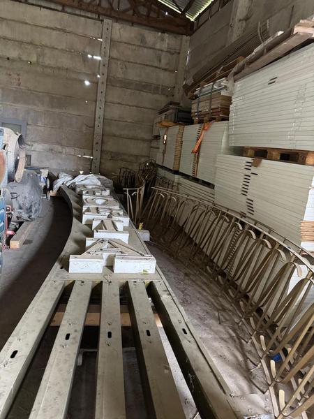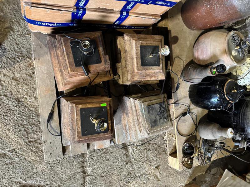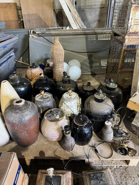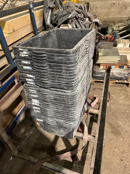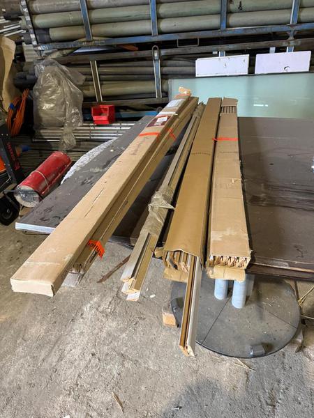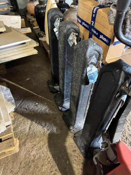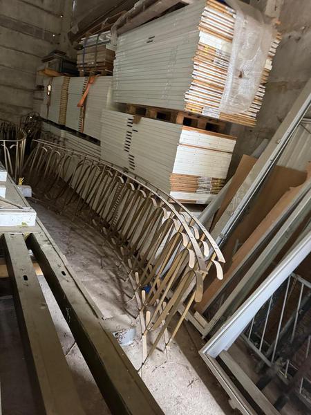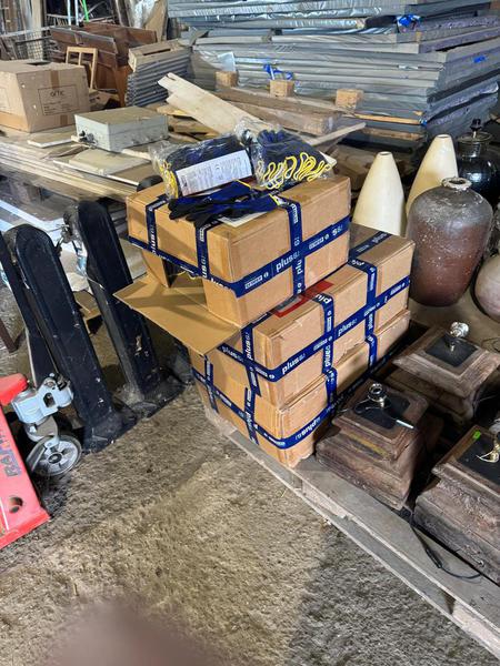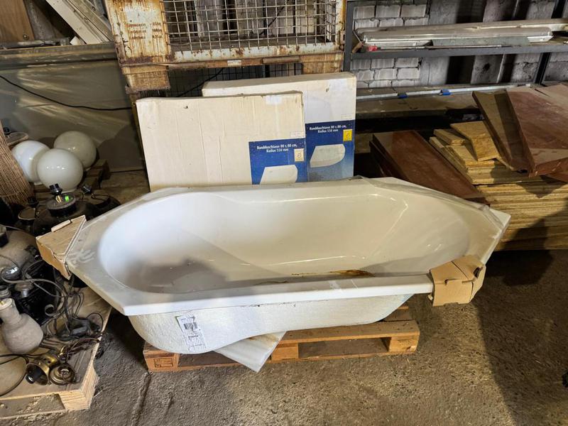 Materialien und weitere Posten/Positionen: Gasbetonsteine, Stäbchenparkett Mooreiche, Doppelstabmattenzaun, Baggermatten, Kachelöfen historisch, Kanonenofen antik