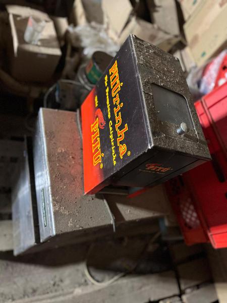Ausstattung aus der Fleischverarbeitung: Wurstfüller, Fleischwolf Kolbe, Geflügelrupfmaschine, V2A-Edelstahl-Wannen, V2A-Edelstahl-Tische/Schränke, Kühlzellen, Tiefkühlzellen