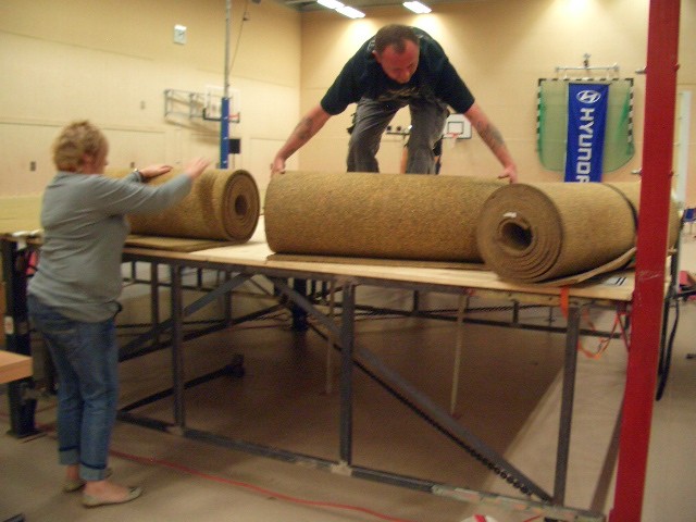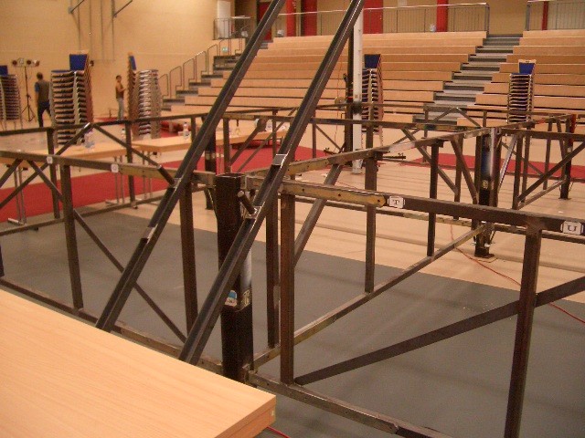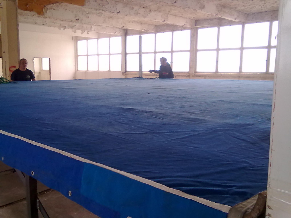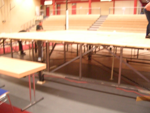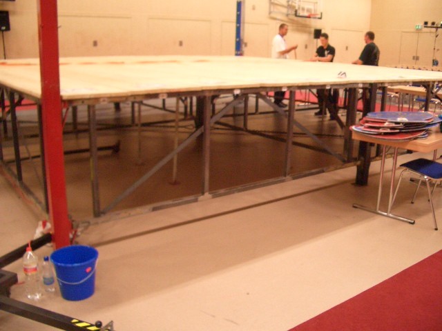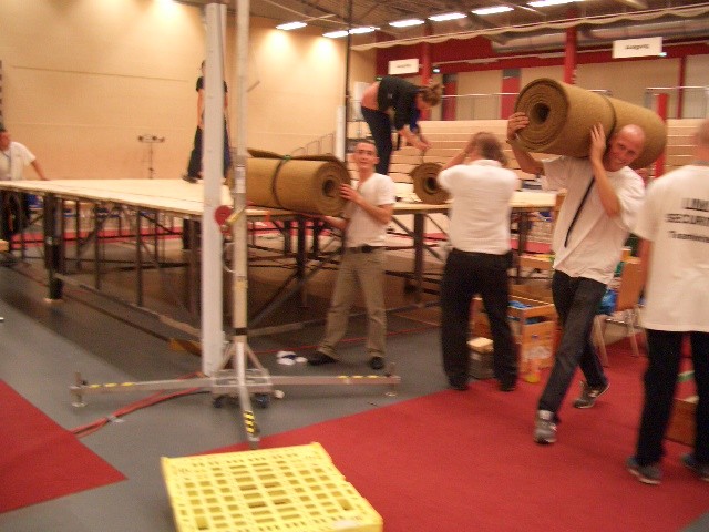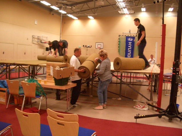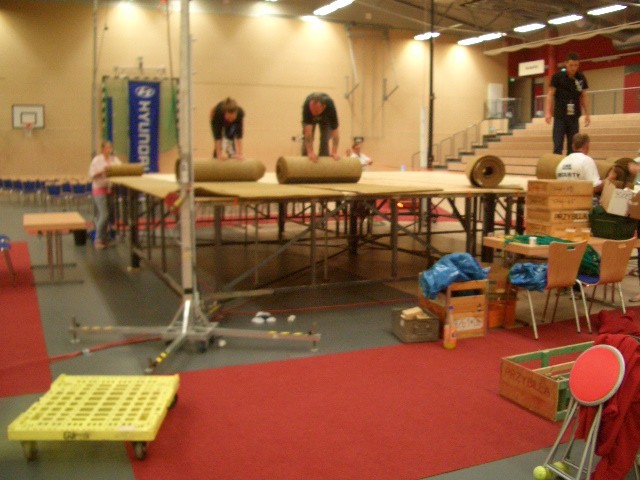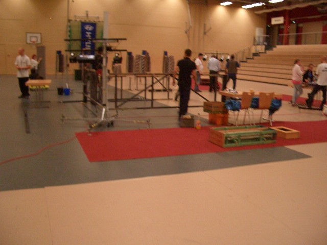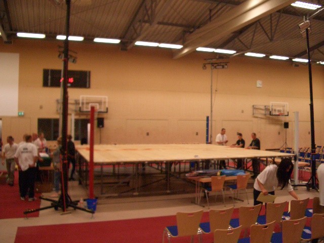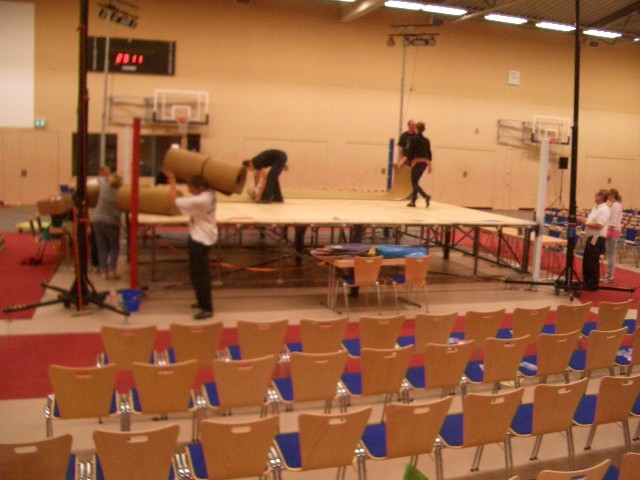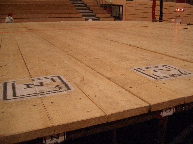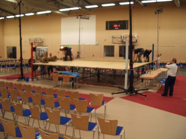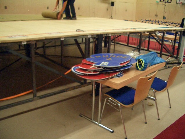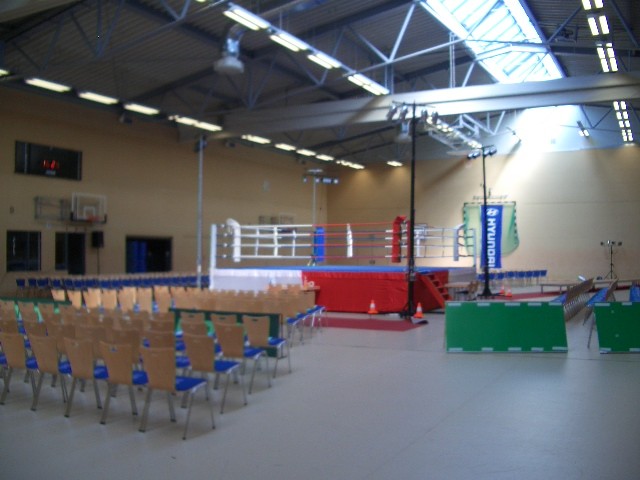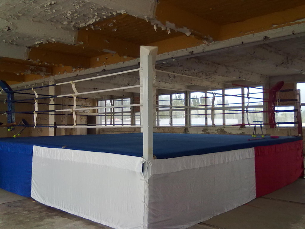 Er hat Olympiamaße und eine quadratische Grundfläche mit 6,50 m Seitenlänge. Die Höhe beträgt 110 cm. Im Lieferumfang sind 4-Ringseile, Eckpolster, Treppen, Hocker etc. enthalten. Auch der Aufbau und der Abbau des Ringes sind in unserem Service inbegriffen. Wir benötigen dafür etwa drei Stunden. Auf- und Abbauhelfer müssen durch Sie gestellt werden.